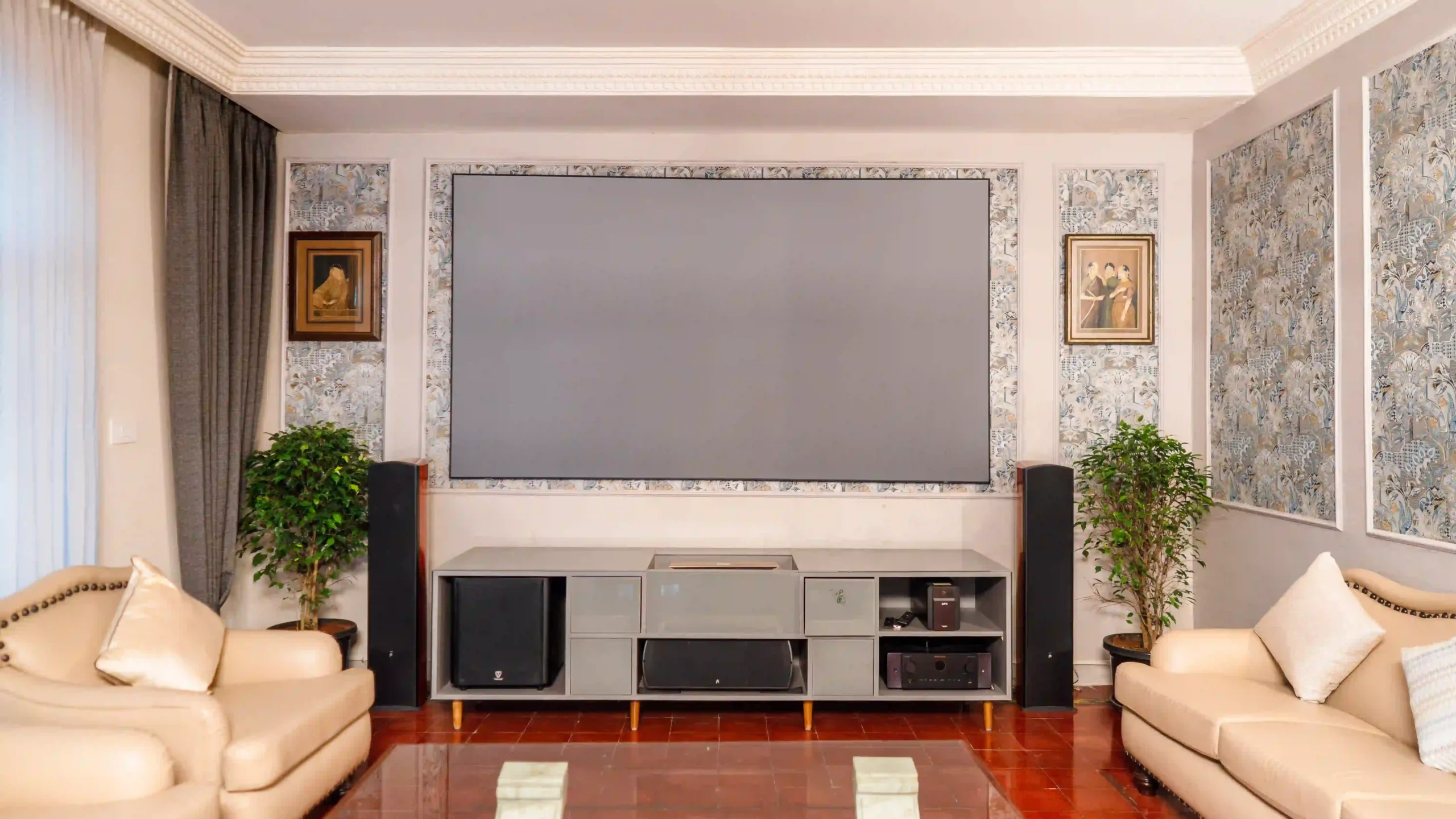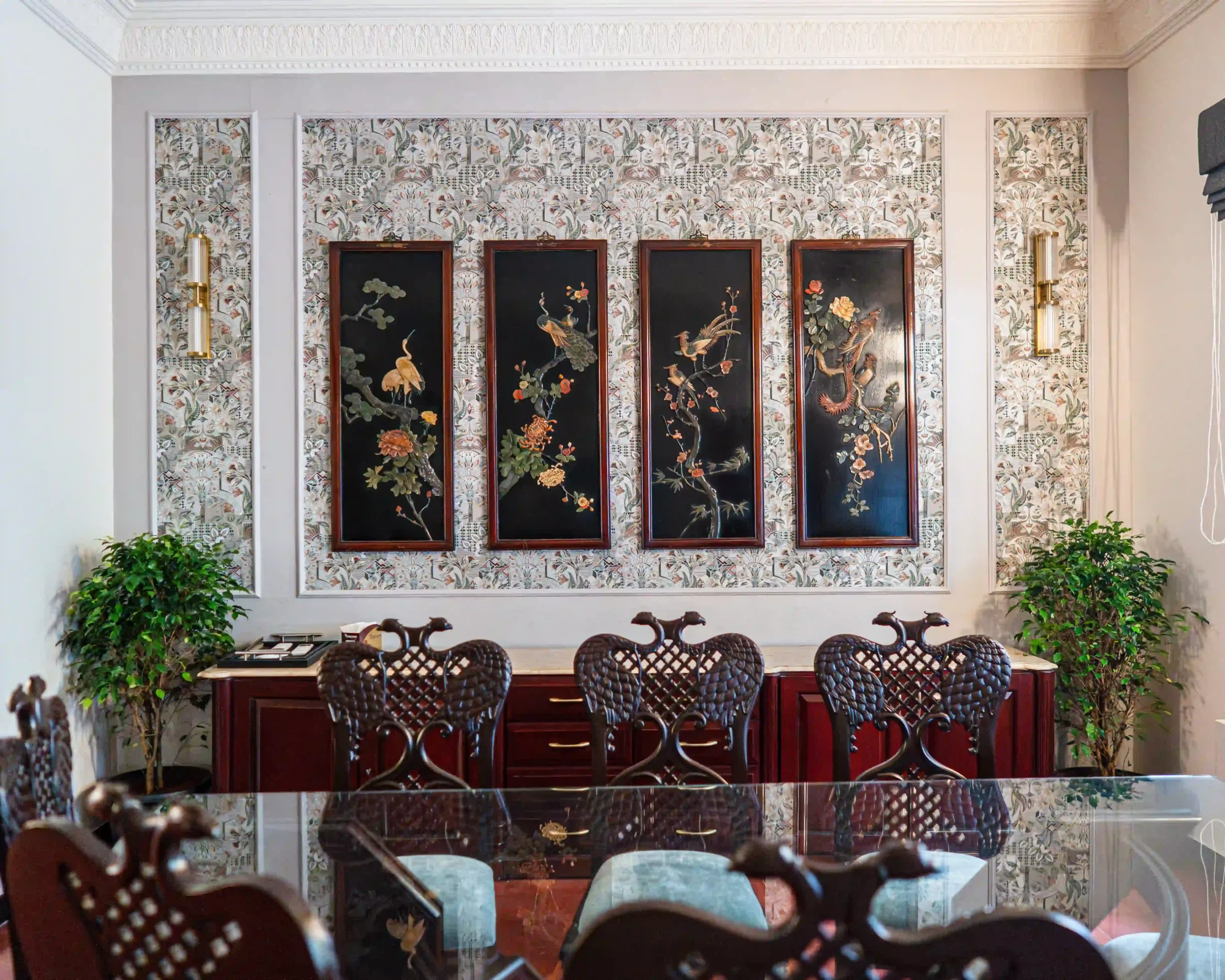 This refurbishment was centred around a much-loved home, with a thoughtful intent to honour both the existing architecture and the furniture—many pieces carrying deep emotional value for the homeowners. The living space was carefully reimagined to balance formal entertaining with intimate family moments, allowing the room to shift effortlessly between occasion and everyday living. Rich, elegantly woven wall cloths were introduced to elevate the atmosphere, adding depth, texture, and a quiet sense of luxury that enriches the overall experience of the space.